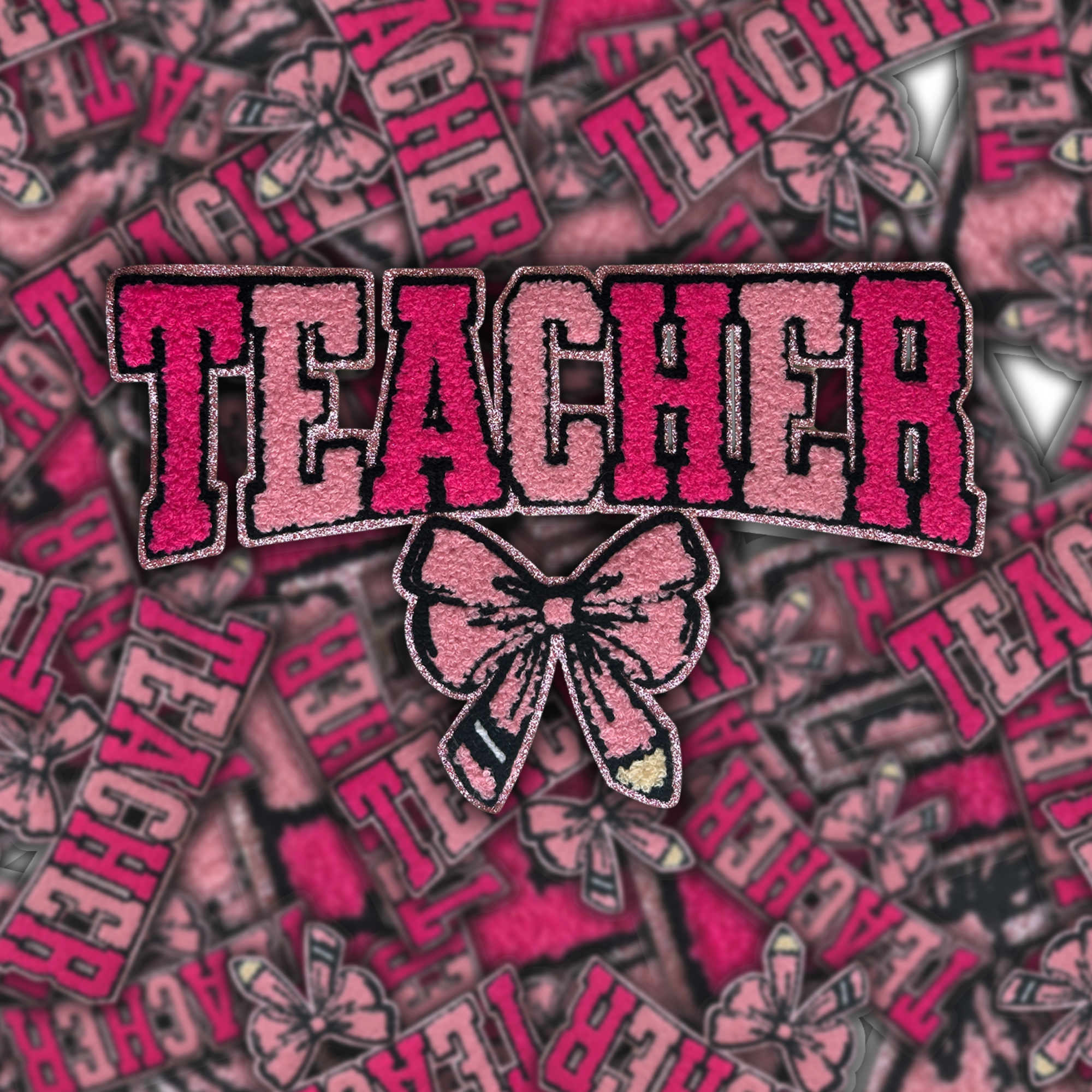 Pink Pink Teacher Bow - Chenille Patch